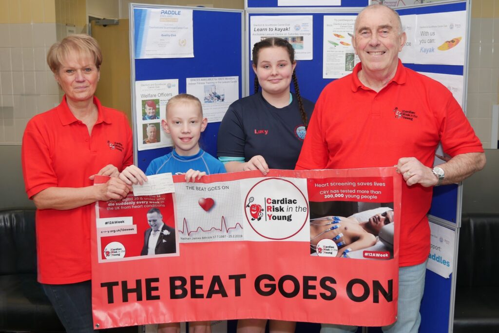 On Saturday evening before our pool session club members Theo Marshall and Lucy Hammond presented a cheque for £300 to Steve and Gill Ayling of local charity The Beat Goes On 31.